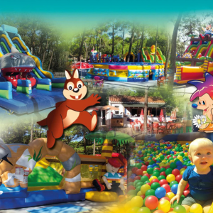Parc de jeux gonflables pour les enfants de 0 à 14 ans, situé sur un site de 8000 m2 à l’abri des pins. Plus de 15 attractions pour vous amuser ! Chaussettes obligatoires. |